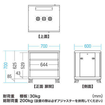 | 本体サイズ | W700×D600×H700mm | 材質 | スチール/エポキシ粉体塗装 |