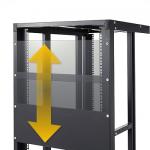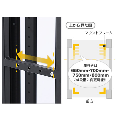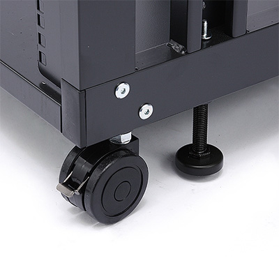 24Uの中型タイプでオフィスやデータセンターに最適。少人数で簡単組立て設計。奥行き900mm。フレームタイプ。ブラック。