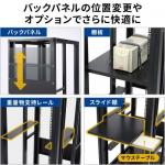 36Uの大型タイプで大容量のデータを扱う場合やサーバー増設時に最適。少人数で簡単組立て設計。奥行き1000mm。フレームタイプ。ブラック。