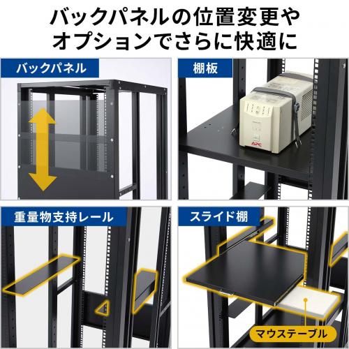 設置・メンテナンス・放熱性に優れた使いやすいパネルレス型の19インチマウント搭載サーバーラック。24Uサイズ。
