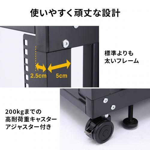 サーバー、周辺機器の設置に最適な簡易19インチオープンサーバーラック。24U。