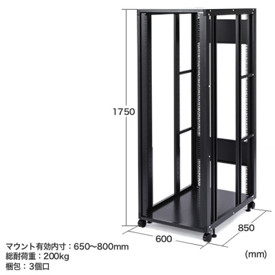 サーバー、周辺機器の設置に最適な簡易19インチオープンサーバーラック。36U。